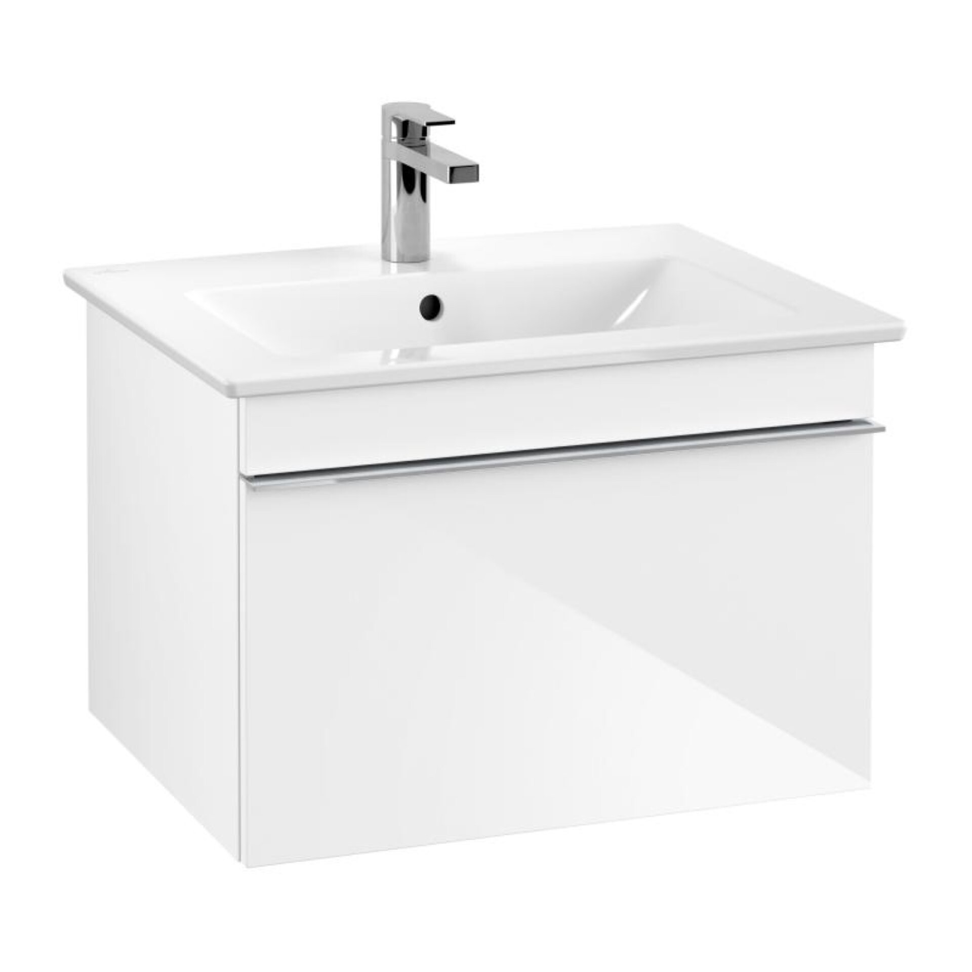 VILLEROY & BOCH VENTICELLO Waschbeckenunterschrank 60 cm breit, Weiß, Griff Chrom, 1 Schublade