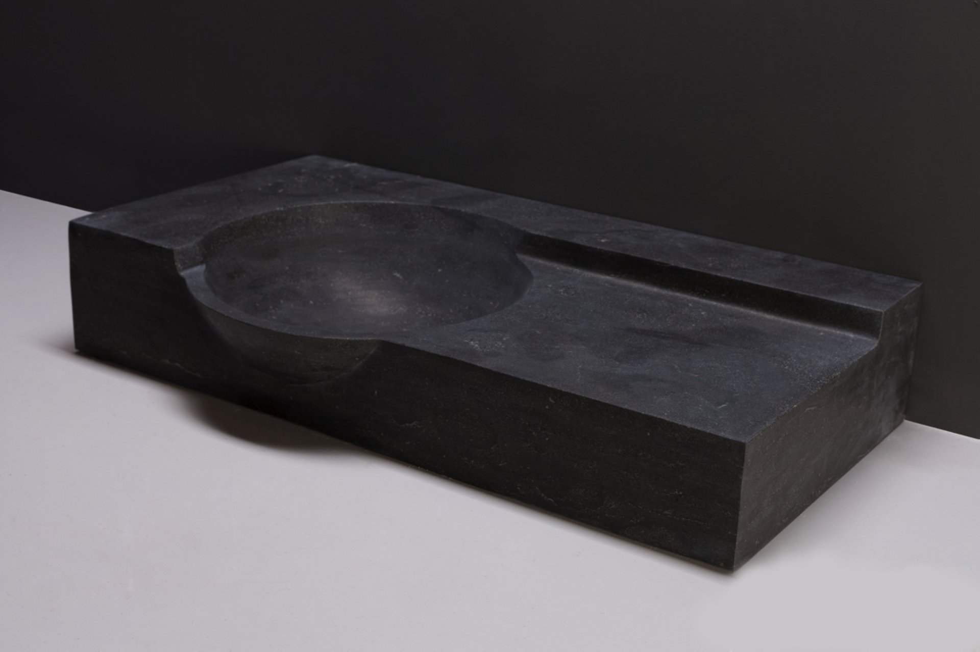 Waschbecken Naturstein LAGUNA 80 cm breit, Bluestone, mit Hahnloch links, 100104