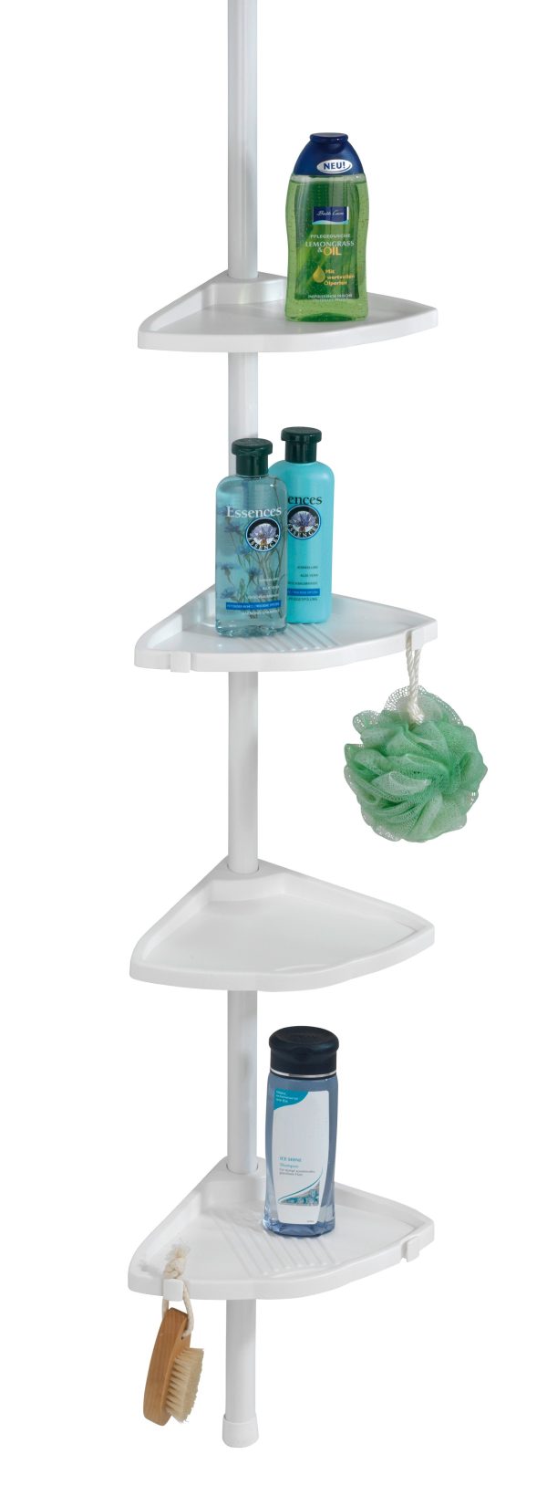 WENKO COMPACT Dusch Eckablage, Weiß, 4 Etagen, ausziehbar – Produktbeschreibung