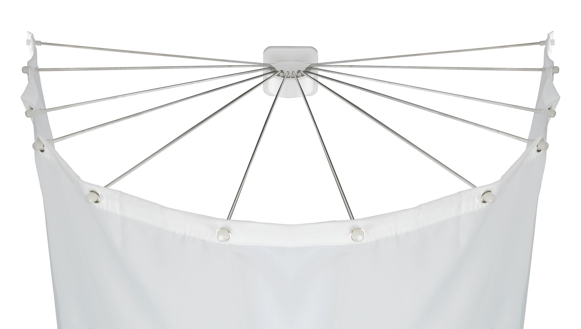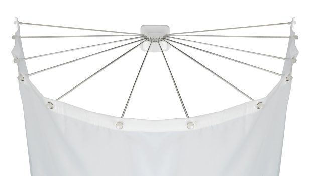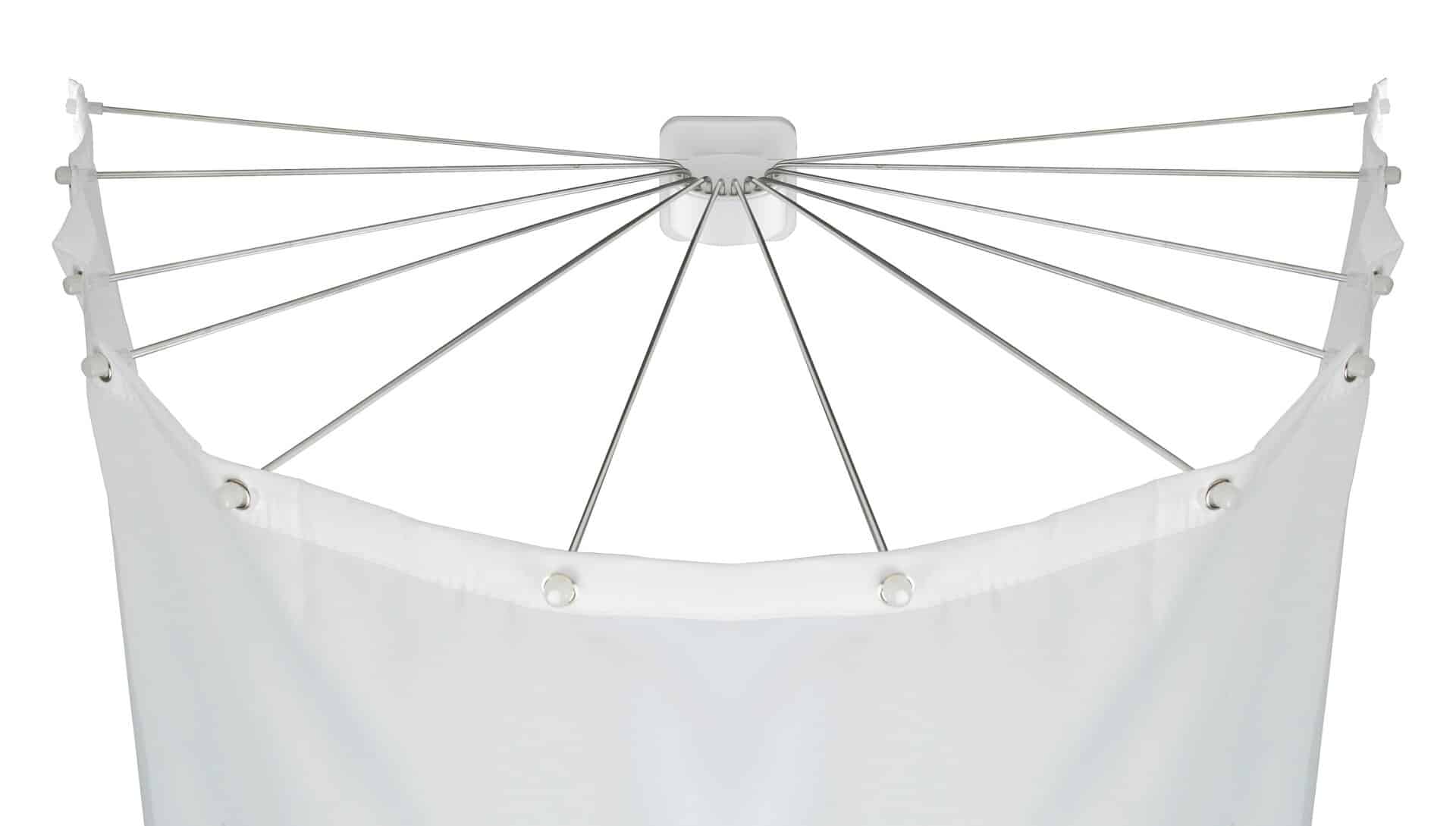 - Sanitärbereiche: Ideal für kleine Duschen in engen Räumen, da der Duschschirm wenig Platz einnimmt und den Duschvorhang ordentlich spannt.