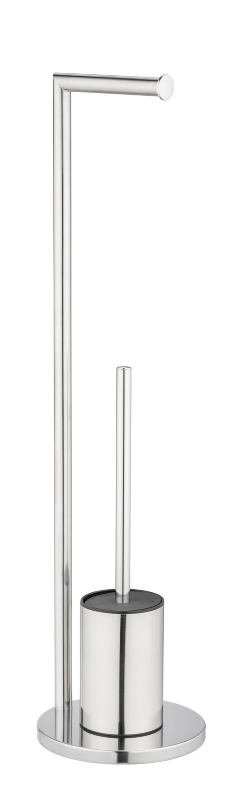 WENKO FERLA WC-Garnitur, Silber glänzend, mit Toilettenpapierhalter, stehend