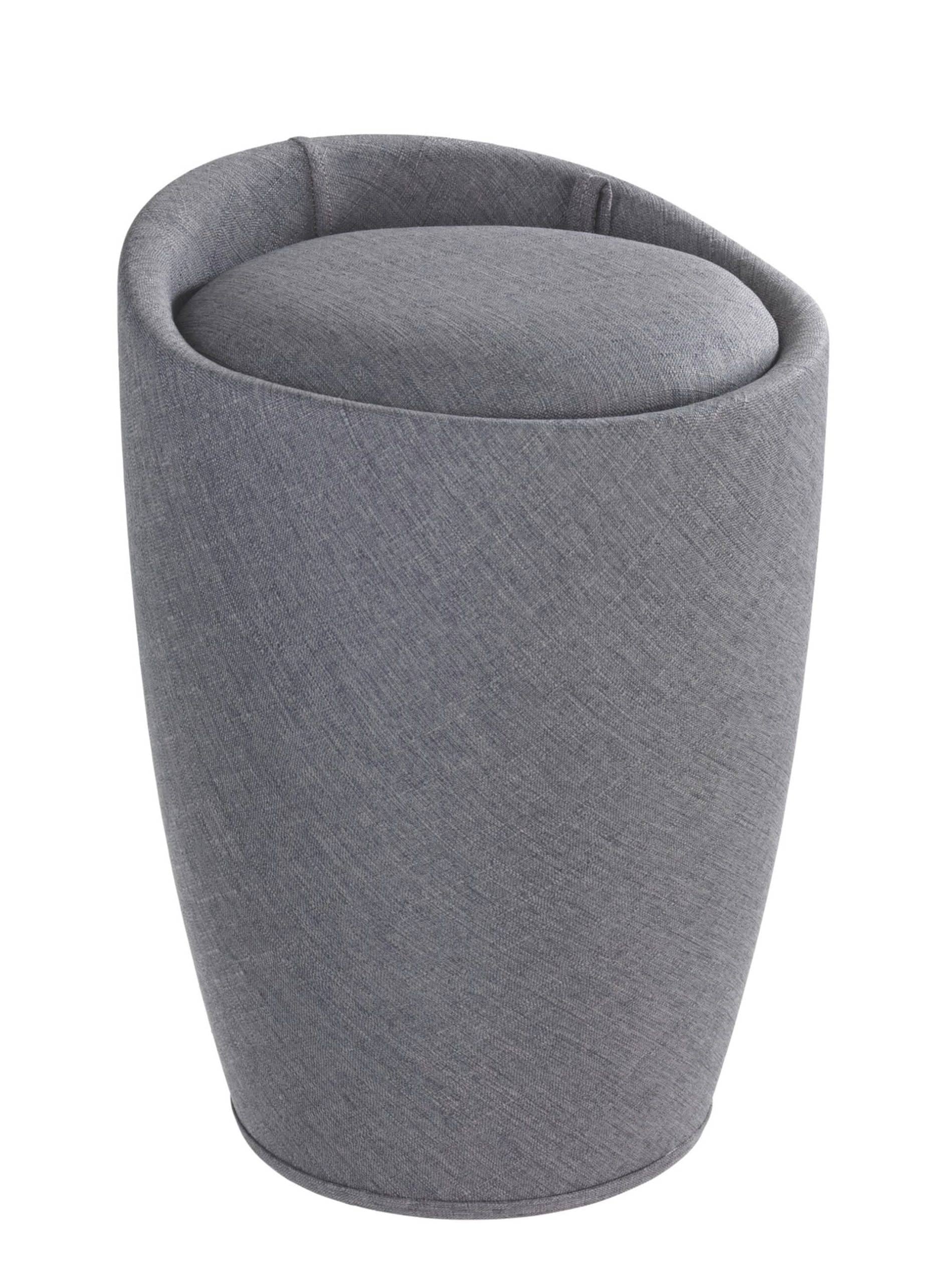 Details zum Produkt: Hochwertiger Badhocker, auch als Wohnhocker geeignet Aus stabilem ABS-Kunststoff mit grauem Stoffbezug in stilvoller Leinen-Optik Bequeme, gepolsterte Sitzfläche, Maße (B/T x H): Ø 36 x 50,5 cm Idealer Wäschesammler mit herausnehmbarem Wäschesack, Inhalt 20 Liter Ausgezeichnet für High Quality, Design und Funktionalität von der Jury des Plus X Awards 2017 – Material: – Farbe:
