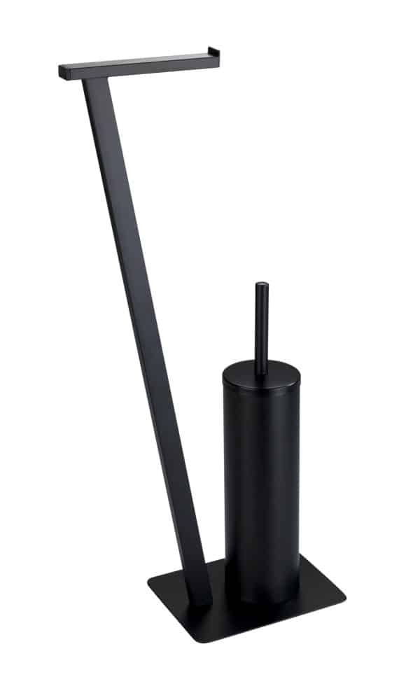 WENKO LIRIO Toilettenpapierhalter, Schwarz matt, mit WC-Garnitur, stehend – Produktbeschreibung