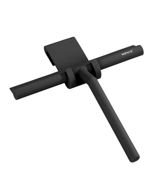 WENKO MOLA Duschabzieher, Schwarz, mit Wandhalterung – Edelstahl ummantelt mit Silikon