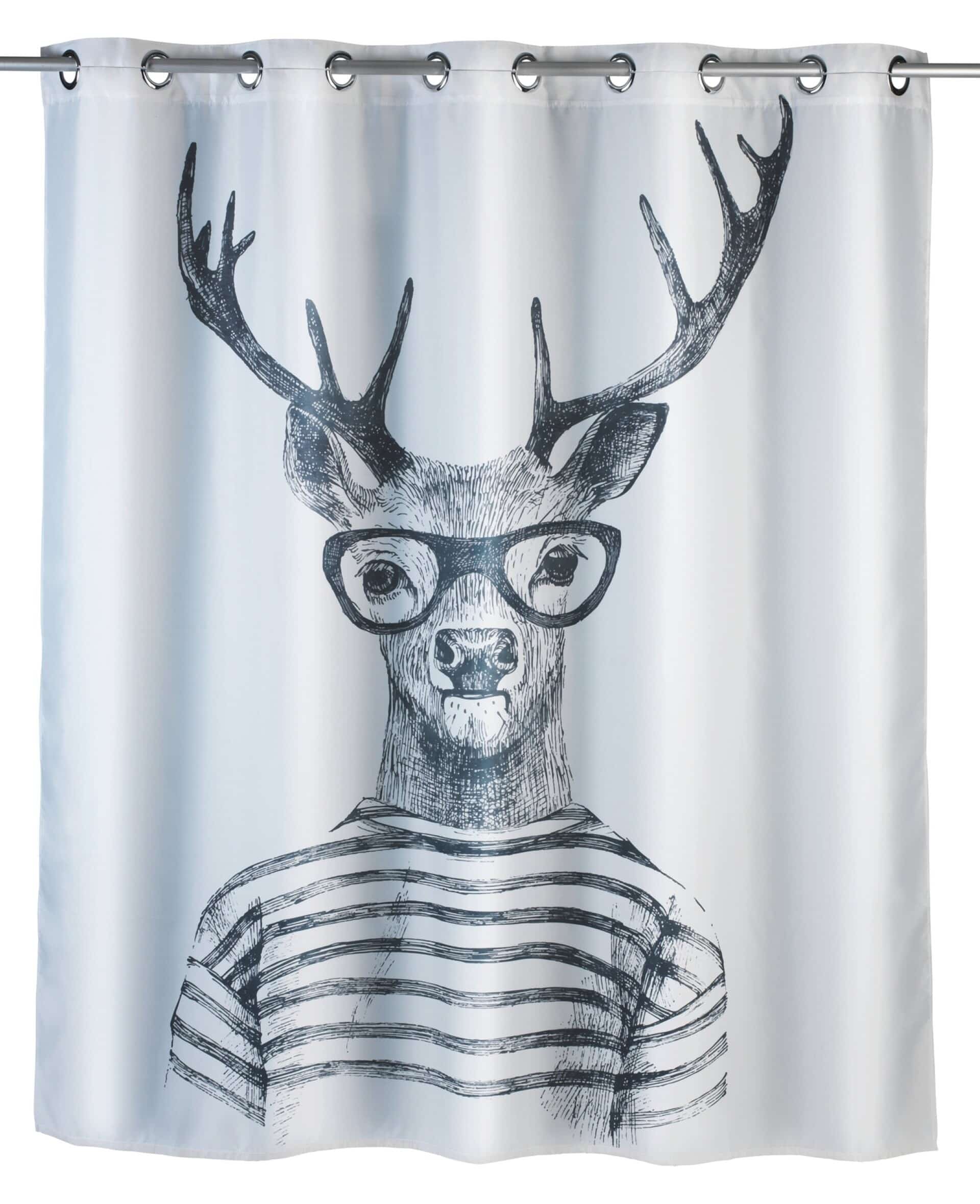 WENKO MR. DEER Duschvorhang 180 x 200 cm, Weiß/Grau, waschbar, Polyester