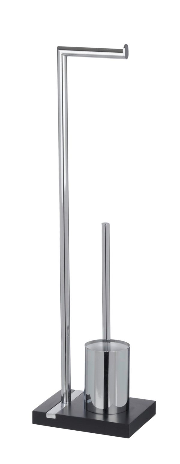 WENKO NOBLE Toilettenpapierhalter, Schwarz, mit WC-Garnitur, stehend