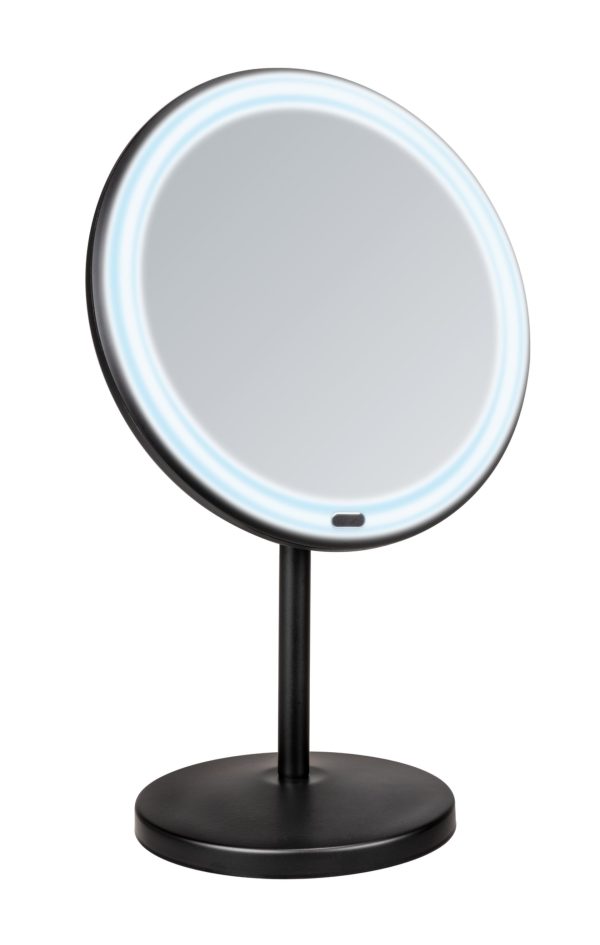 WENKO ONNO Kosmetikspiegel Ø 16,5 cm, Schwarz, 5-fach Vergrößerung, Touchfunktion, stehend