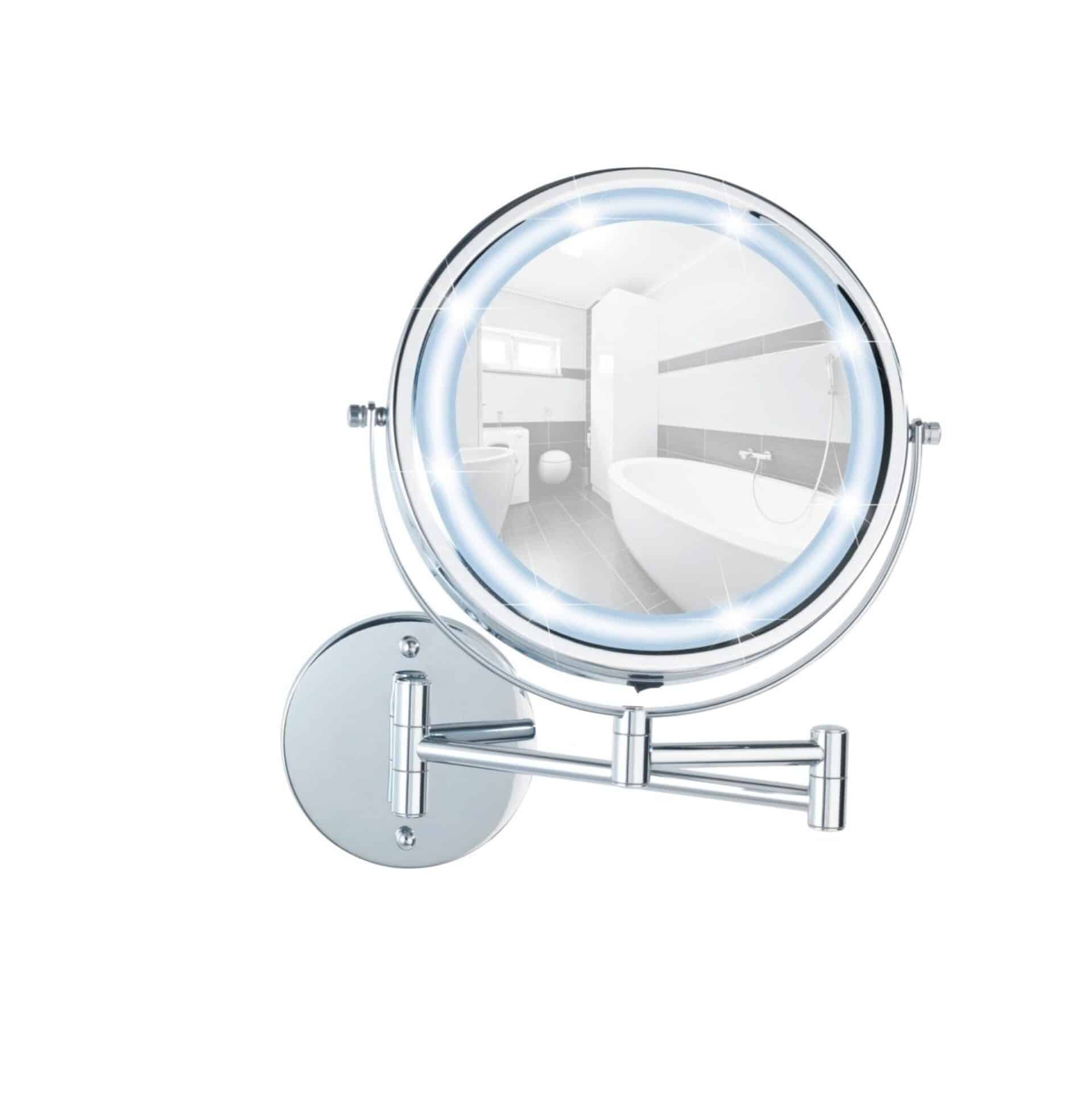 WENKO Power-Loc® LED Wandspiegel Lumi, 5-fach Vergrößerung, Befestigen ohne bohren