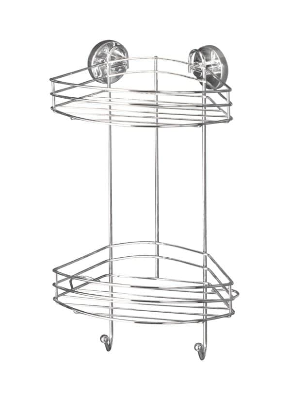 Die WENKO VACUUM-LOC Dusch Eckablage verbindet modernes Design mit höchster Funktionalität. Aus hochwertigem, glänzend verchromtem Metall gefertigt, bringt sie eleganten Glanz in jede Dusche. Die clevere 2 Etagen-Konstruktion bietet reichlich Stauraum für Ihre Duschutensilien und sorgt für Ordnung und Übersicht.