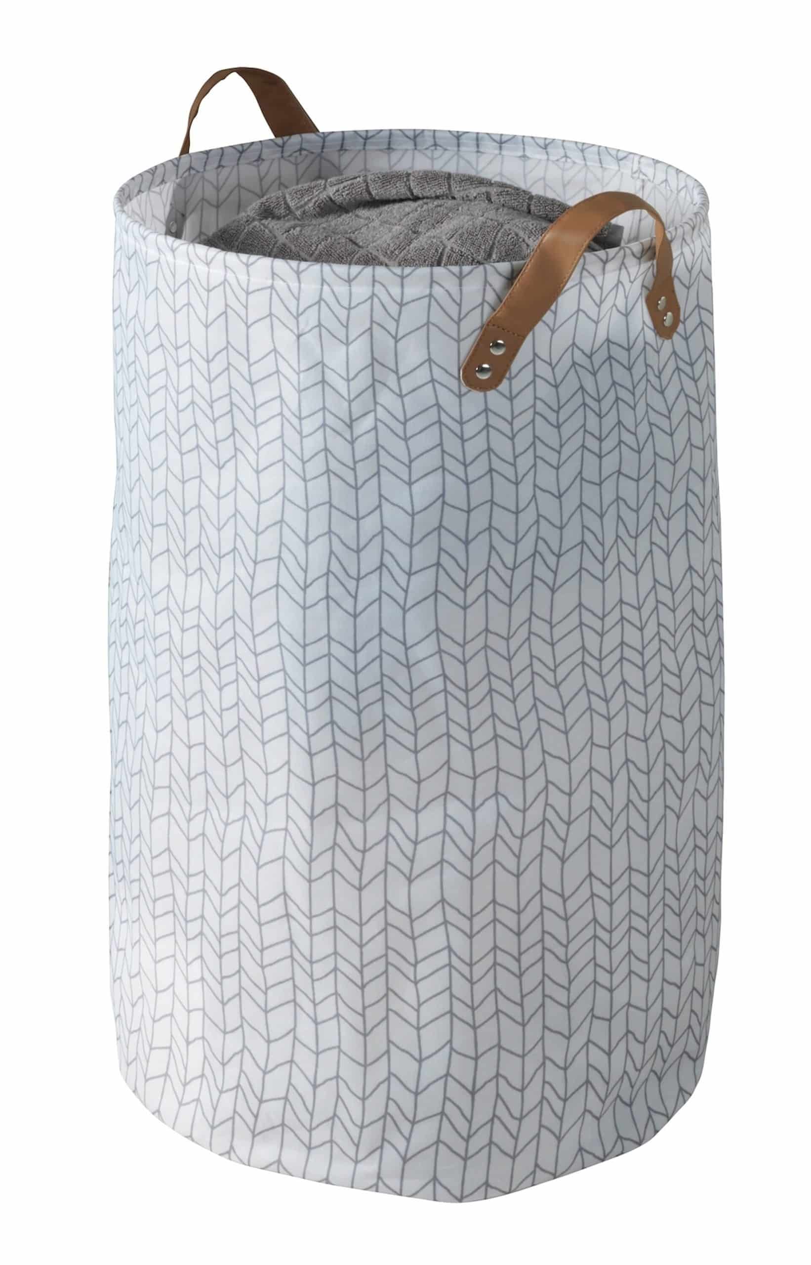 Details zum Produkt: <ul><li>Ein Must-Have für jeden Haushalt: Die geräumige Wäschetruhe (Ø 40 x 60 cm) macht in jedem Raum eine gute Figur und bietet mit ihren 75 Litern Fassungsvermögen viel Stauraum für Ihre Wäsche</li><li>Erleichtert den Wasch-Alltag: Mit den beiden Tragegriffen ist für einen kinderleichten Transport der Wäschebox zur Waschmaschine gesorgt</li><li>Praktische Funktionen: Für eine platzsparende Lagerung ist der Wäschekorb bei Nichtgebrauch ganz einfach zusammenfaltbar, auch für die dekorative Aufbewahrung von Leergut ideal</li><li>Hochwertige Qualität: Da uns Langlebigkeit & Nachhaltigkeit am Herzen liegen, verwenden wir qualitativ hochwertige Materialien. Damit Sie lange Freude an dem Wäschesammler haben, ist der Korb aus 100% Polyester mit Griffen aus PU gefertigt</li><li>Trendige Optik: Im weißen Gewand mit filigranem Muster ist der Wäschesack ein Hingucker im Schlafzimmer, Badezimmer und Waschraum. Seine Kunstleder-Griffe in stimmigem Braun runden das ästhetische Erscheinungsbild ab</li></ul> – Material: – Farbe:
